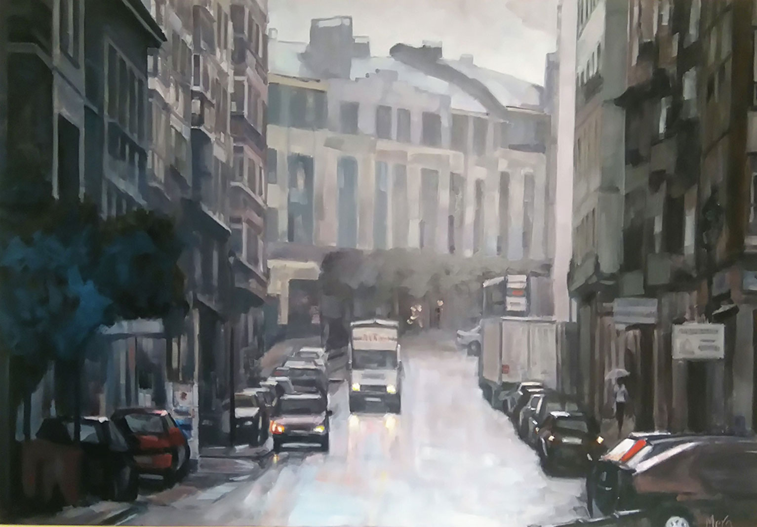 Calle mojada Óleo sobre lienzo, 46x38. Allaráz (Orense) 2001. |